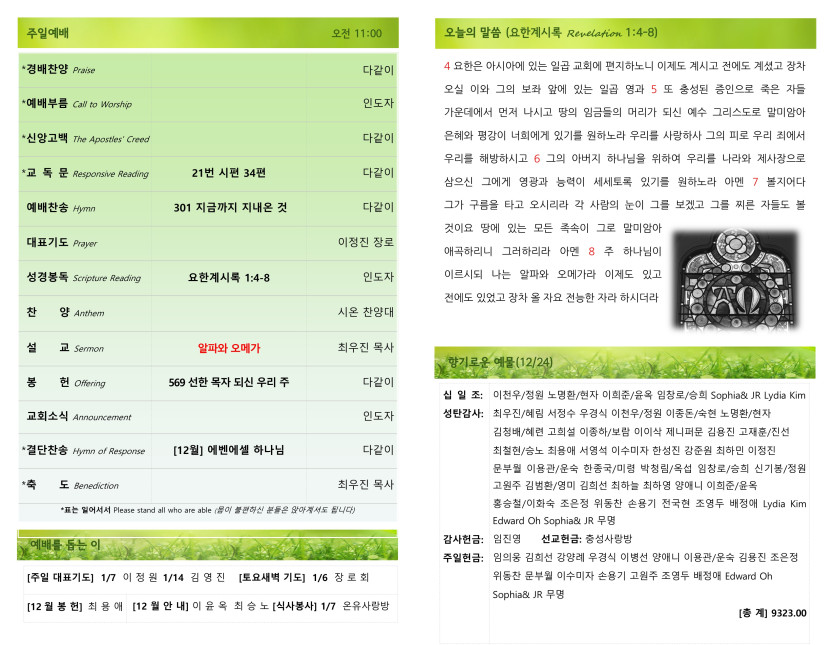 December 30, 2023 . 새찬양교회 [123123] 주일예배 주보