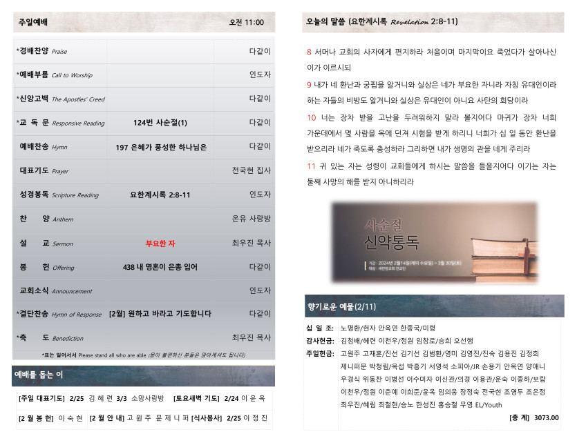 [021824] 주일예배 주보 > 예배주보 Bulletin