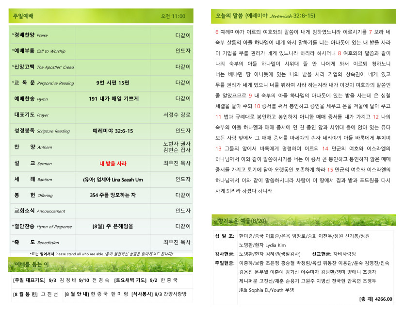 [082723] 주일예배 주보 > 예배주보 Bulletin
