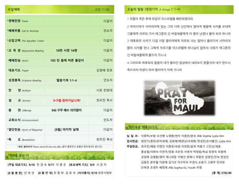 September 02, 2023 . 새찬양교회 [090323] 주일예배 주보