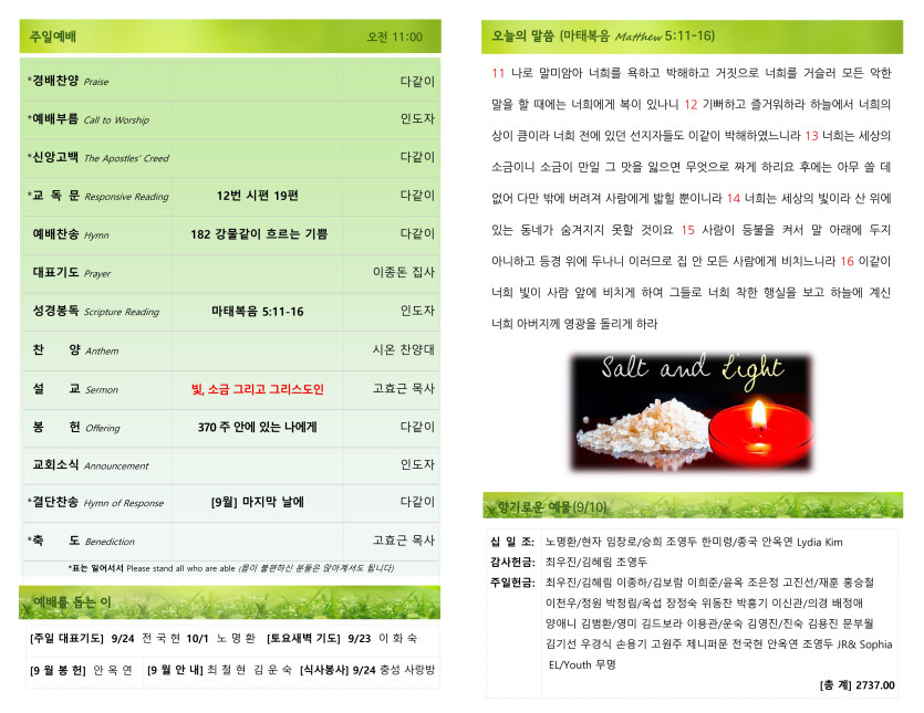 [091723] 주일예배 주보 > 예배주보 Bulletin