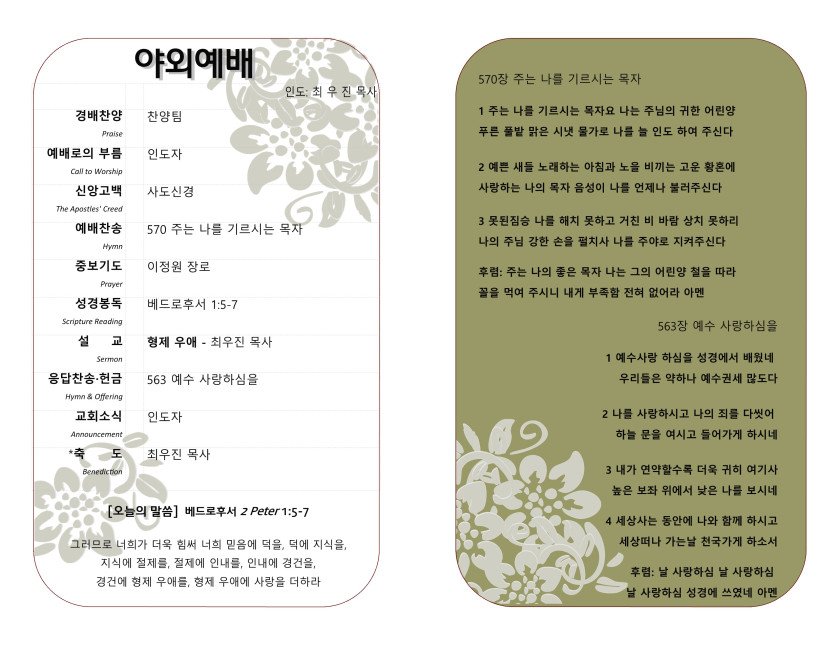 [102223] 주일예배 주보 > 예배주보 Bulletin