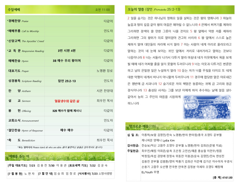 [071623] 주일예배 주보 > 예배주보 Bulletin