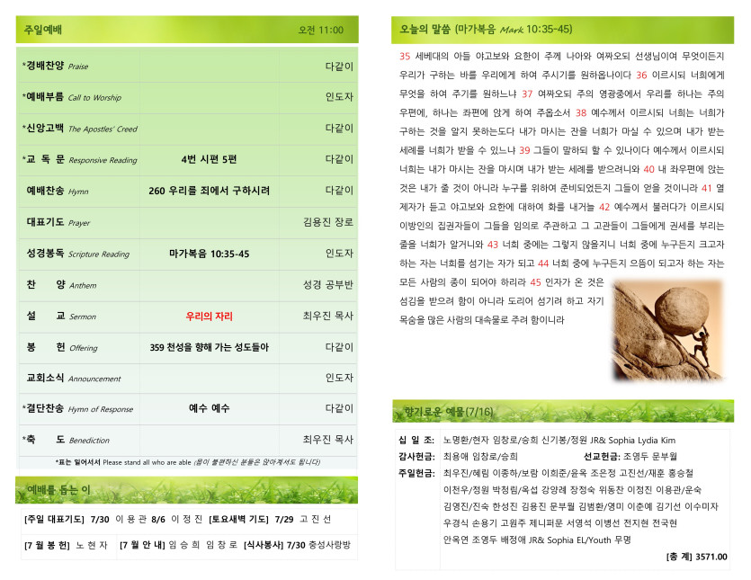 [072323] 주일예배 주보 > 예배주보 Bulletin