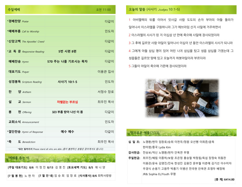[073023] 주일예배 주보 > 예배주보 Bulletin