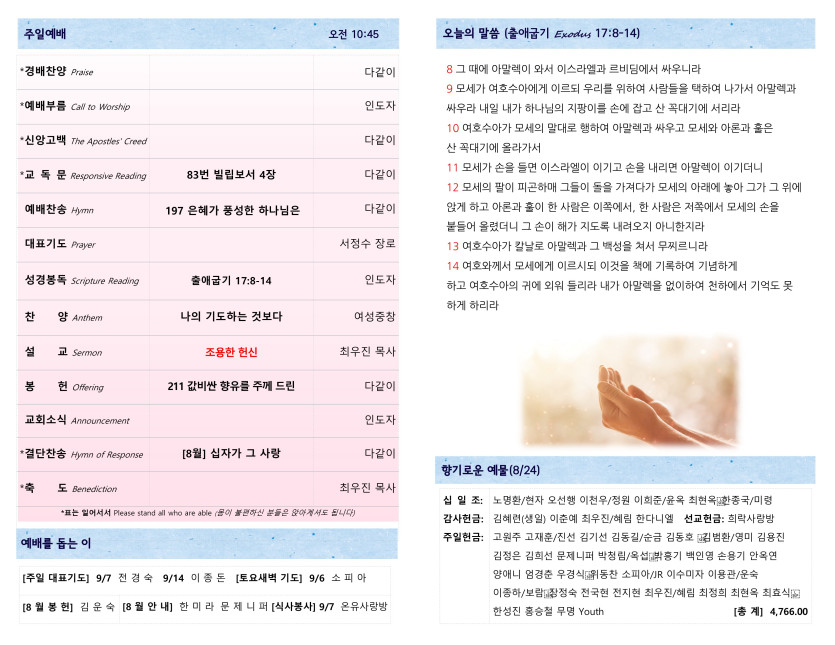 [083125] 주일예배 주보 > 예배주보 Bulletin