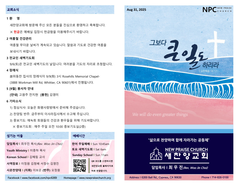 August 30, 2025 . 새찬양교회 [083125] 주일예배 주보