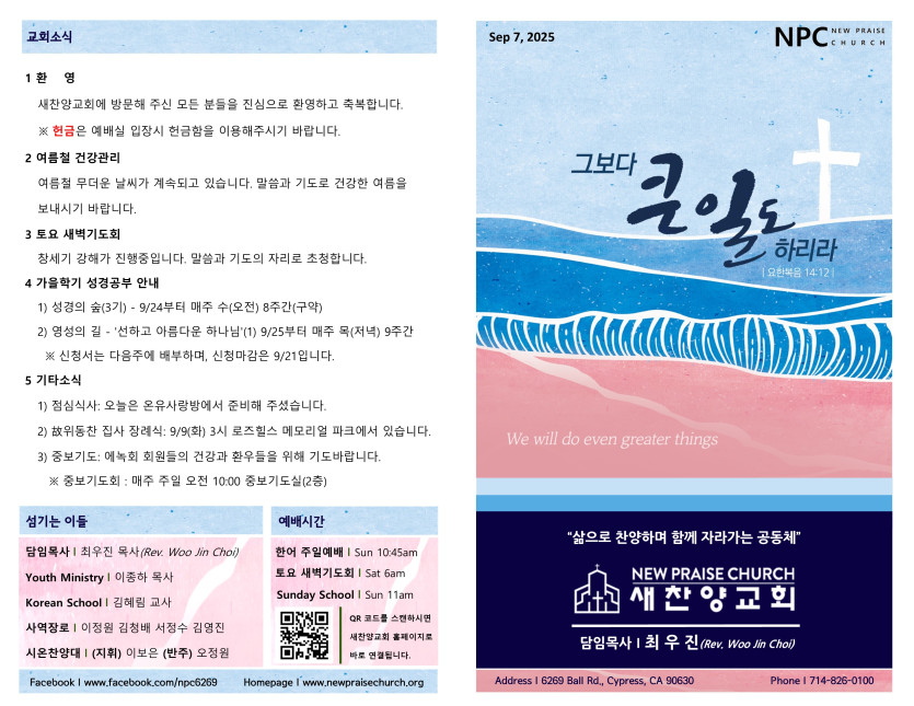 September 06, 2025 . 새찬양교회 [090725] 주일예배 주보