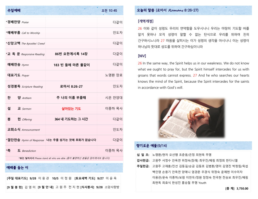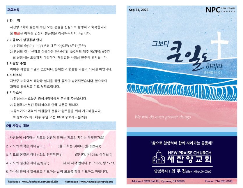 September 20, 2025 . 새찬양교회 [092125] 주일예배 주보
