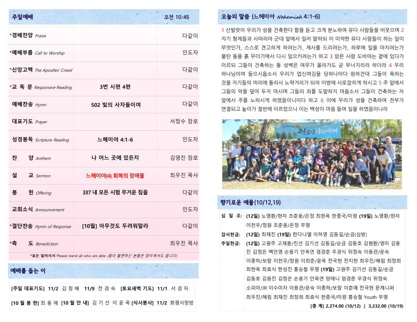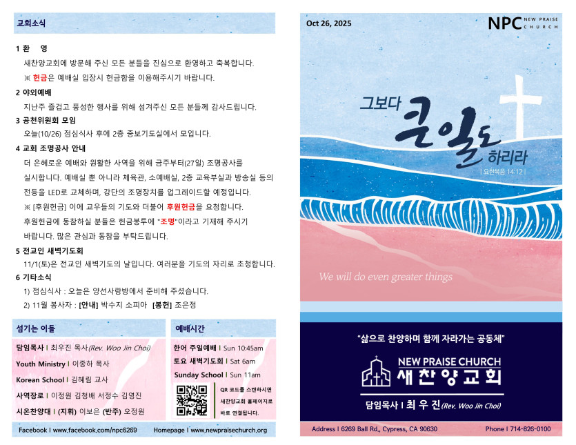 October 25, 2025 . 새찬양교회 [102625] 주일예배 주보