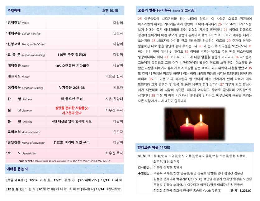 December 06, 2025 . 새찬양교회 [120725] 주일예배 주보
