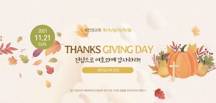다음 주일(11/21)은 추수감사주일로 지킵니다.
