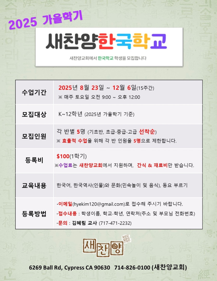 - 다음글[2025] 새찬양한국학교 봄학기 안내 25.02.07